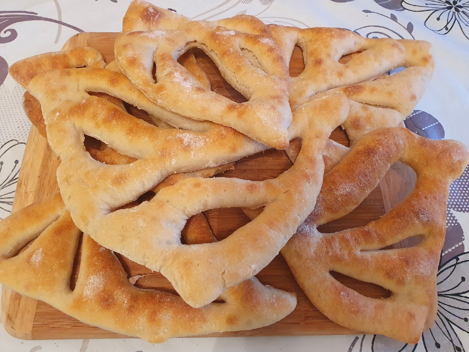 Стильный фугасс - это реинкарнация очень старой идеи. Изначально фугасс был плоской мучной лепёшкой, сродни фокачче - оба этих названия происходят от латинского "focus" - "очаг", потому что этот хлеб выпекался прямо в печи под слоем раскалённых углей.